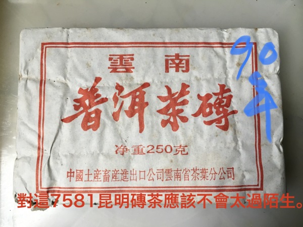 91年昆明茶廠關廠前的【7581半生熟茶磚 】亦叫「國民茶磚」250g